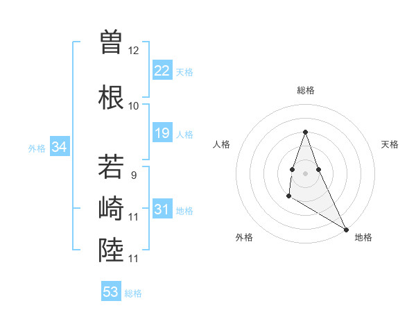 曽根 若崎陸さんを姓名の画数から五運を鑑定