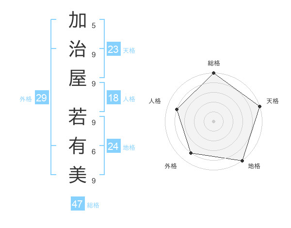加治屋 若有美さんの総格は47画の5点