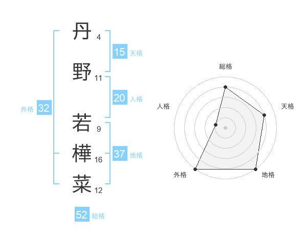 丹野 若樺菜さんを姓名の画数から五運を鑑定