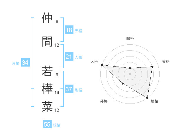 仲間 若樺菜さんを姓名の画数から五運を鑑定