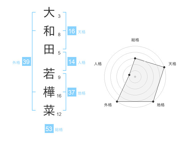 大和田 若樺菜さんを姓名の画数から五運を鑑定