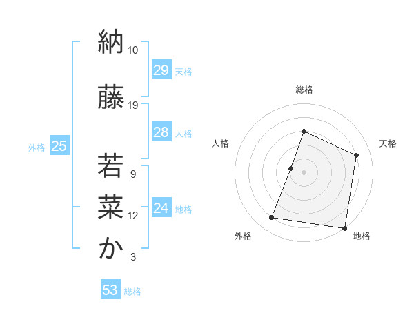 納藤 若菜かさんの総格は53画の3点!