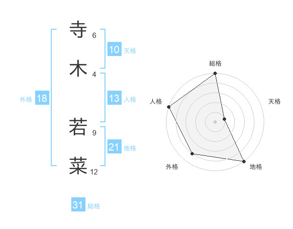 寺木 若菜さんの総格は31画の5点!