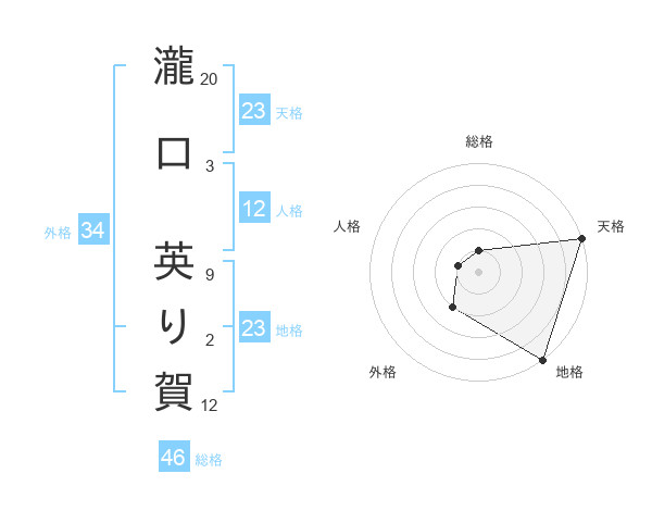 瀧口 英り賀さんを姓名の画数から五運を鑑定