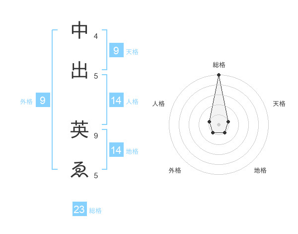 中出 英ゑさんを姓名の画数から五運を鑑定
