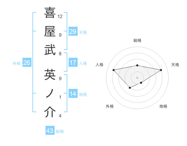 喜屋武 英ノ介さんを姓名の画数から五運を鑑定