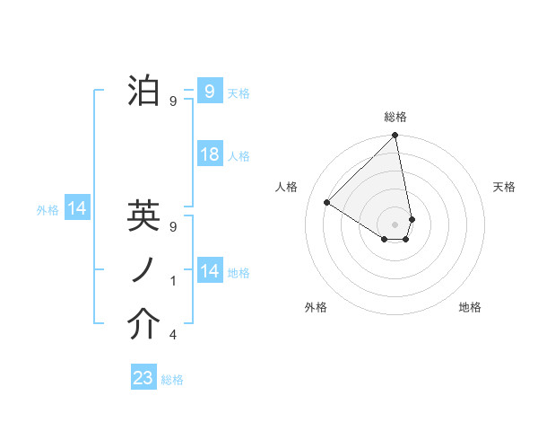 泊 英ノ介さんの総格は23画の5点!