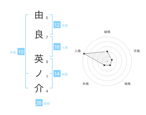 由良 英ノ介さんを姓名の画数から五運を鑑定