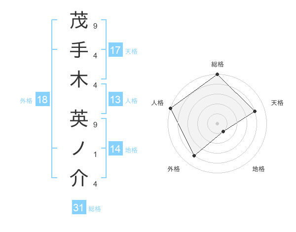 茂手木 英ノ介さんを姓名の画数から五運を鑑定