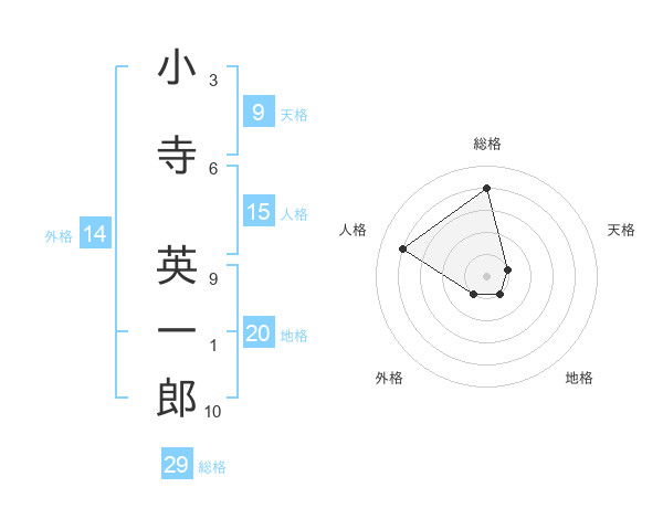 小寺 英一郎さんの総格は29画の4点!