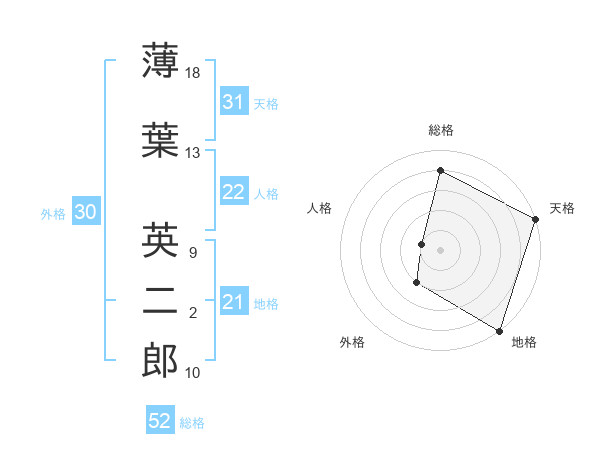 薄葉 英二郎さんを姓名の画数から五運を鑑定