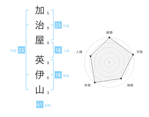 加治屋 英伊山さんの総格は41画の5点