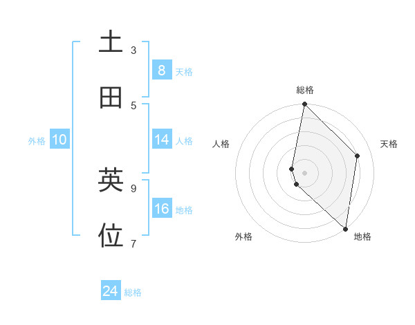 土田 英位さんの総格は24画の5点!