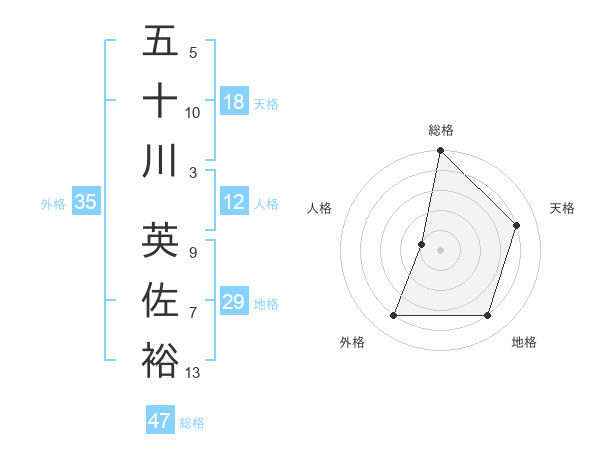 五十川 英佐裕さんを姓名の画数から五運を鑑定