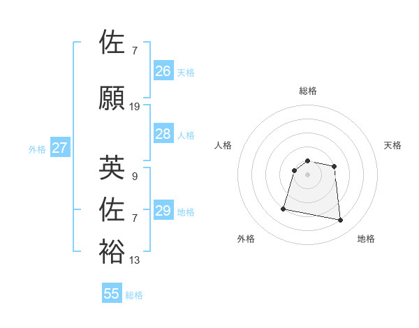 佐願 英佐裕さんの総格は55画の1点!