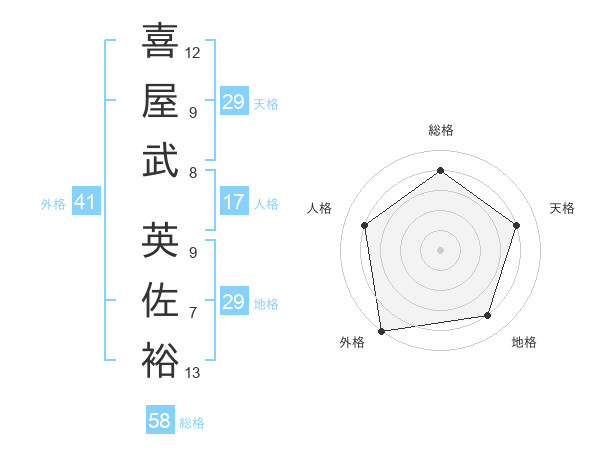 喜屋武 英佐裕さんを姓名の画数から五運を鑑定