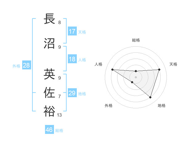 長沼 英佐裕さんの地格は29画の4点!
