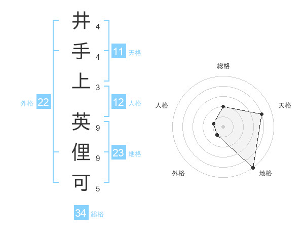 井手上 英俚可さんを姓名の画数から五運を鑑定