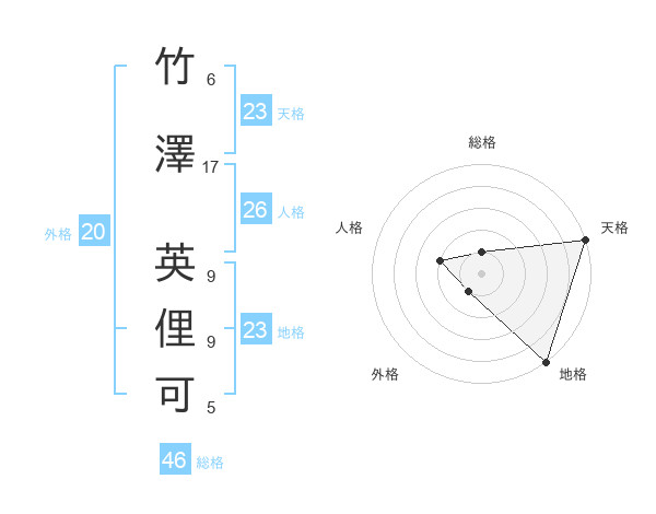 竹澤 英俚可さんを姓名の画数から五運を鑑定