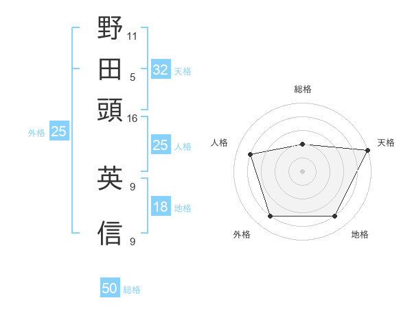 野田頭 英信さんを姓名の画数から五運を鑑定