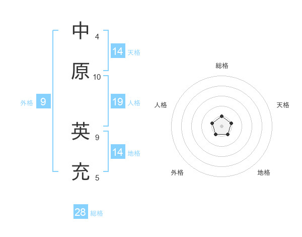 中原 英充さんの天格は14画の1点!