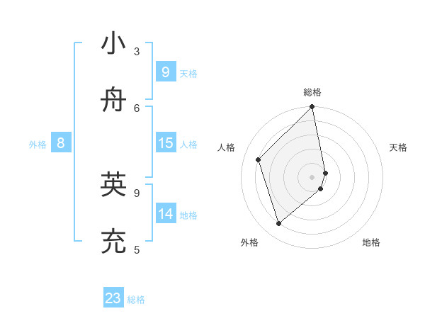 小舟 英充さんの総格は23画の5点!