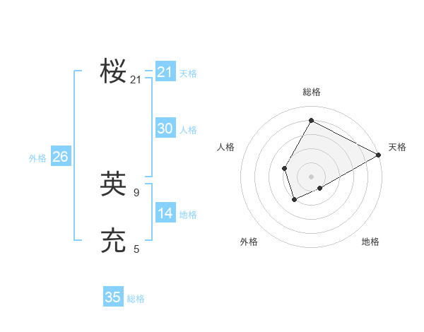 桜 英充さんの総格は35画の4点!