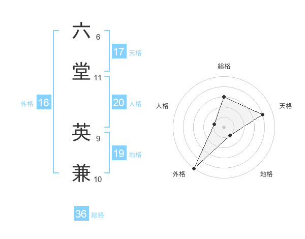 六堂 英兼さんの天格は17画の4点!