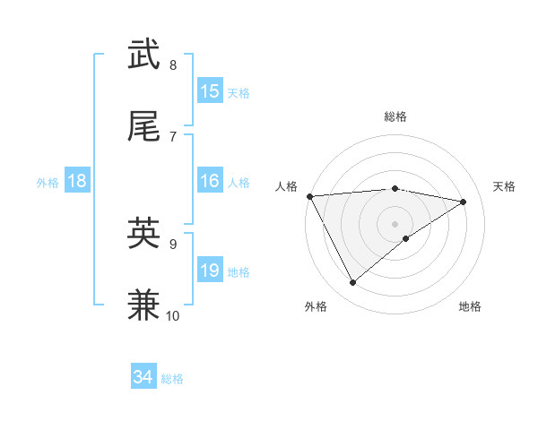 武尾 英兼さんを姓名の画数から五運を鑑定