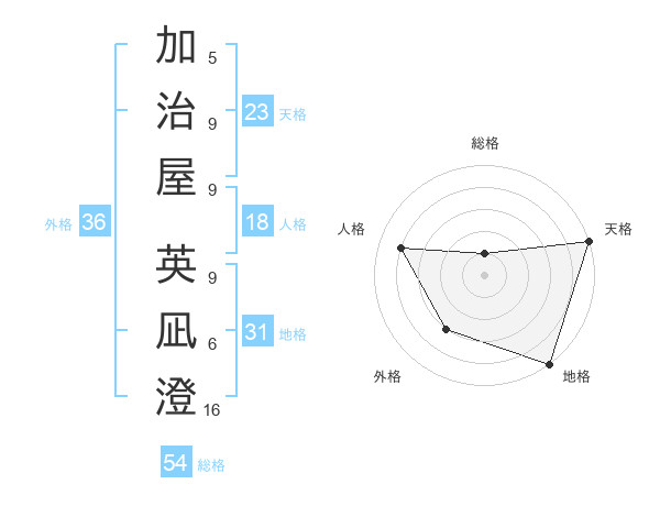 加治屋 英凪澄さんの天格は23画の5点