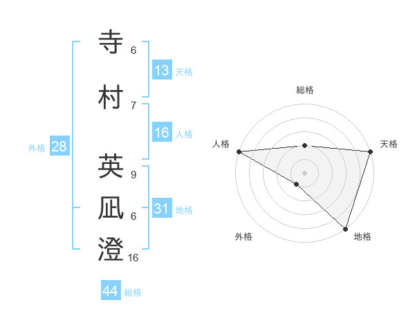 寺村 英凪澄さんの人格は16画の5点!