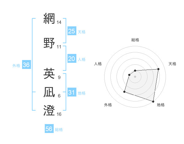 網野 英凪澄さんの総格は56画の1点!
