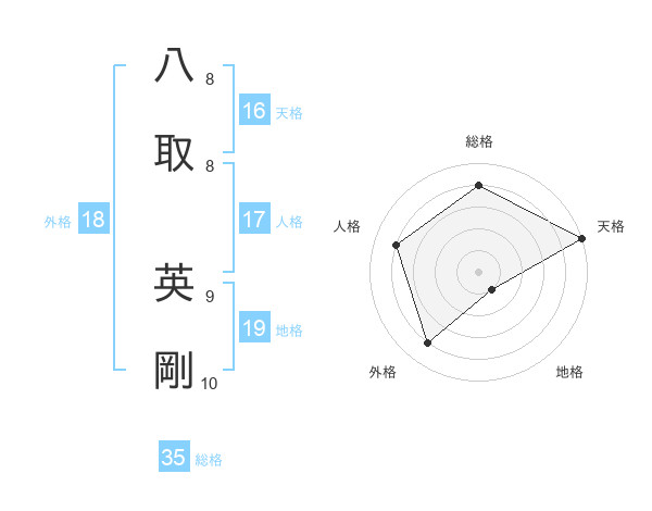 八取 英剛さんの総格は35画の4点!