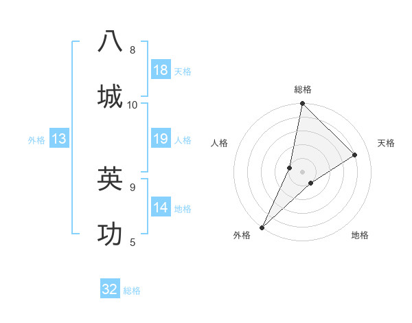 八城 英功さんの総格は32画の5点!