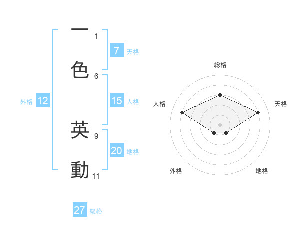 一色 英動さんの総格は27画の3点!