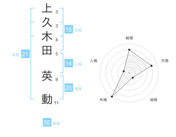 上久木田 英動さんを姓名の画数から五運を鑑定