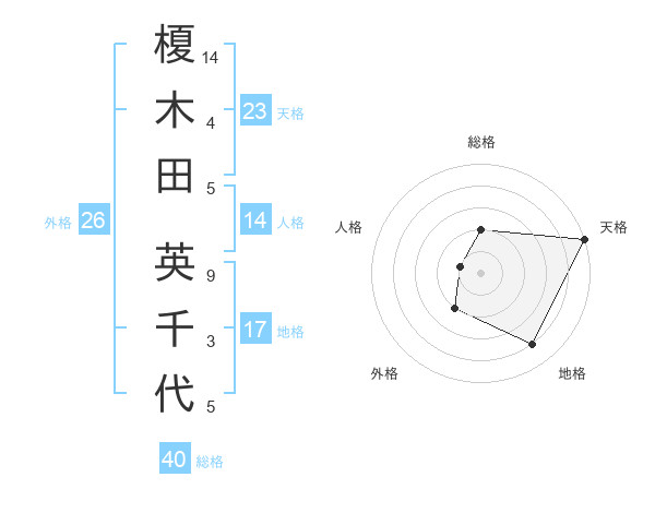 榎木田 英千代さんの天格は23画の5点!
