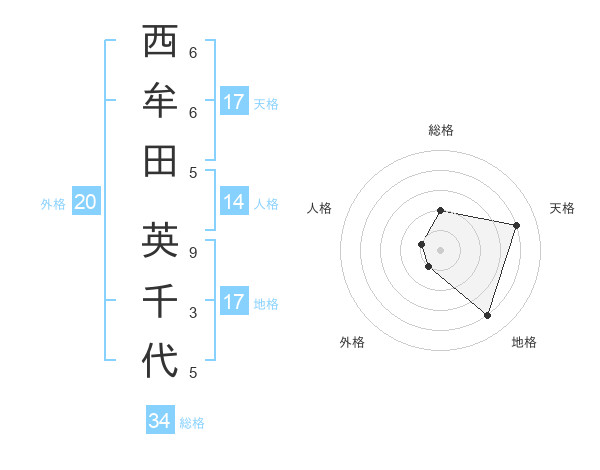 西牟田 英千代さんの天格は17画の4点!