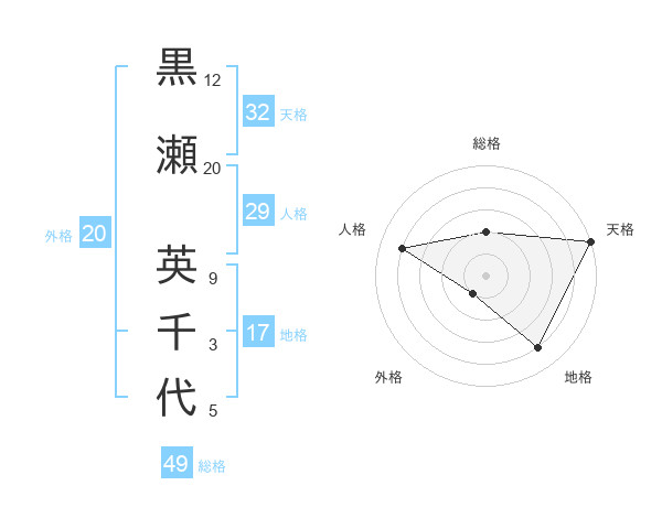 黒瀬 英千代さんの天格は32画の5点!