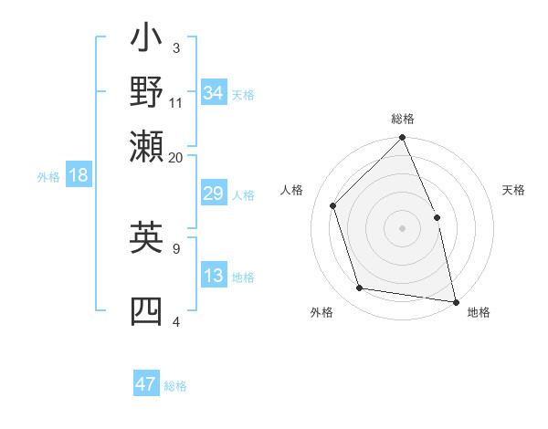 小野瀬 英四さんを姓名の画数から五運を鑑定