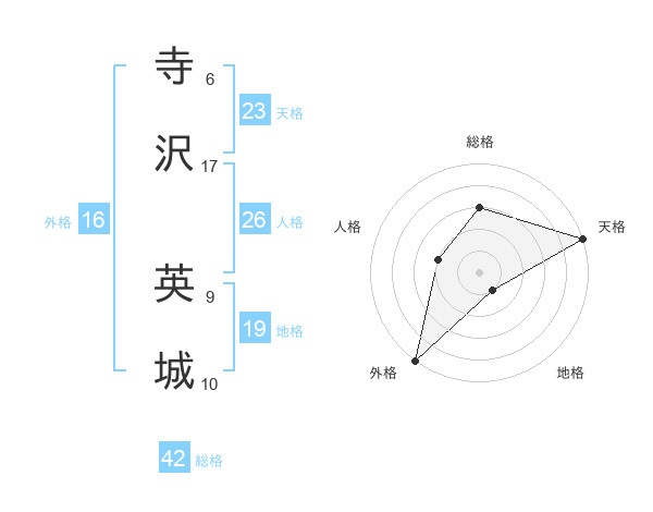寺沢 英城さんの総格は42画の3点!
