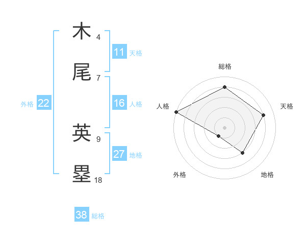 木尾 英塁さんを姓名の画数から五運を鑑定