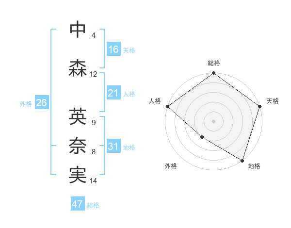 中森 英奈実さんの総格は47画の5点!