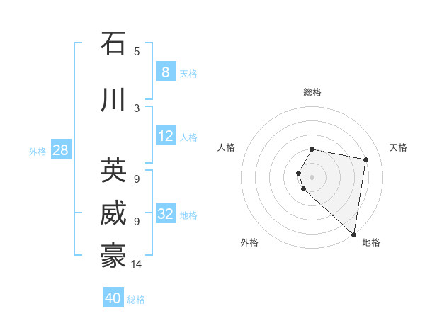 石川 英威豪さんを姓名の画数から五運を鑑定