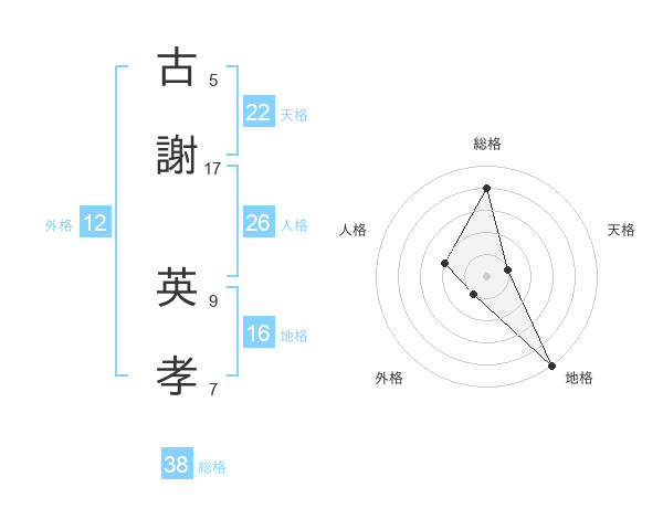 古謝 英孝さんを姓名の画数から五運を鑑定