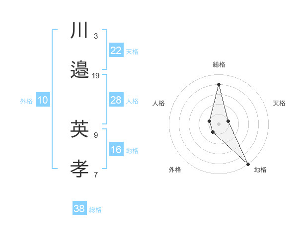 川邉 英孝さんの総格は38画の4点!