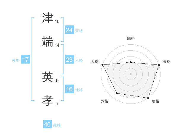 津端 英孝さんの天格は24画の5点!