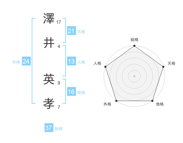 澤井 英孝さんを姓名の画数から五運を鑑定