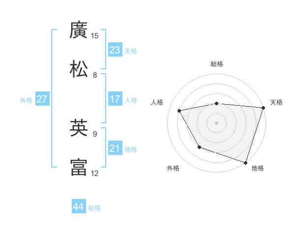 廣松 英富さんの天格は23画の5点!