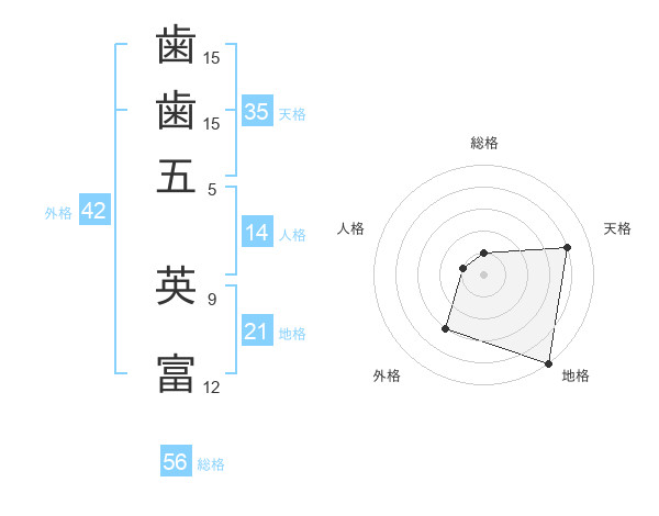 歯歯五 英富さんを姓名の画数から五運を鑑定